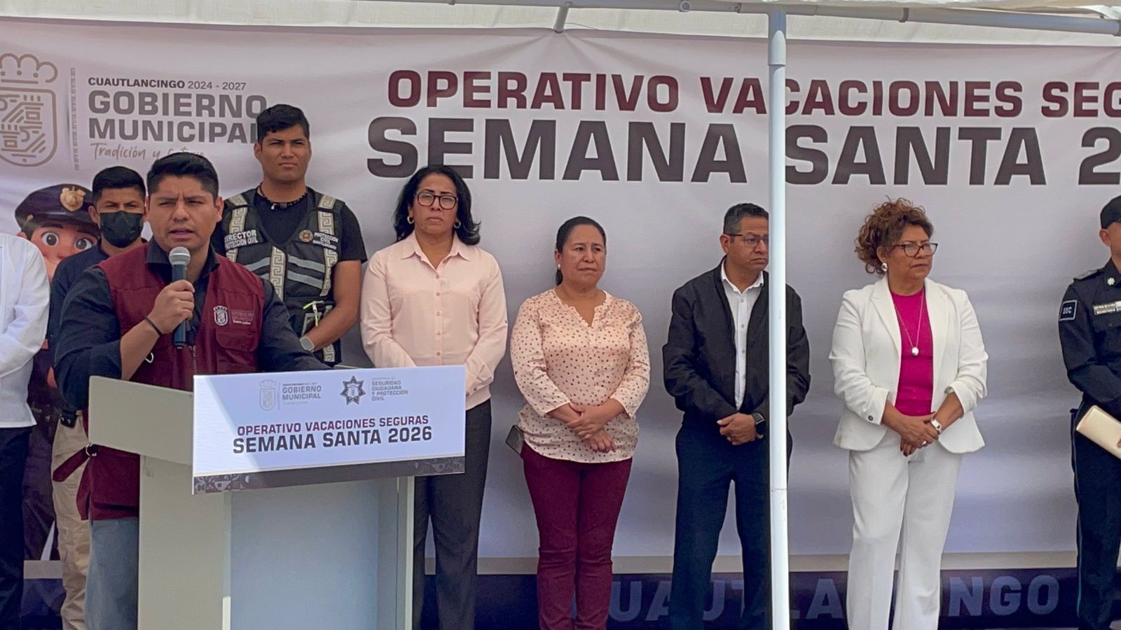 El presidente Municipal de Cuautlancingo Omar Muñoz realizó el banderazo de salida a los elementos policiales y cuerpos de emergencia que encabezan el operativo de Semana Santa Segura Cuautlancingo 2026.