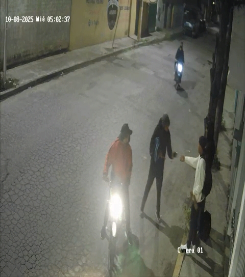 El atraco quedó grabado por una cámara de seguridad, cerca de las 05:00 horas de este miércoles 8 de octubre, en el video, se observa la llegada de cinco sujetos a bordo de tres motocicletas.