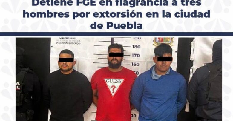 La Fiscalía General del Estado informó sobre la detención de tres presuntos extorsionadores en la capital poblana, cuando cobraban el pago de una de sus víctimas, en un negocio de estructuras metálicas.