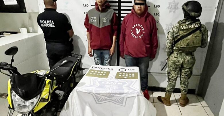 Policías Municipales de Texmelucan en coordinación con Elementos de la Secretaría de Marina, lograron el aseguramiento de dos presuntos narcomenudistas en la junta auxiliar de San Baltazar Temaxcalac.