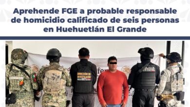 Detienen a presunto responsable de la muerte de seis personas en Huehuetlán El Grande