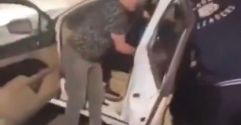En el video, se observa cuando dos sujetos, quienes viajaban en el vehículo blanco, sostienen a una joven que apenas puede mantenerse en pie y abandonan el automóvil.
