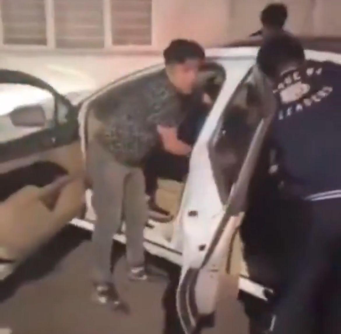 En el video, se observa cuando dos sujetos, quienes viajaban en el vehículo blanco, sostienen a una joven que apenas puede mantenerse en pie y abandonan el automóvil.