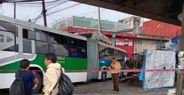 Puebla, Pue.- La tarde de este miércoles 24 de septiembre, un autobús articulado del sistema RUTA perdió el control de la unidad y se impactó contra casetas de comida, que se ubican abajo del distribuidor vial de la CAPU.