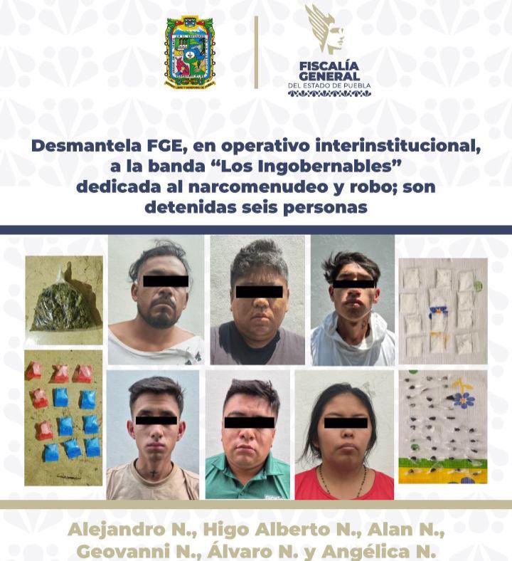Los sujetos detenidos, fueron identificados como Alejandro N., Alberto N., Alan N., Geovanni N., Álvaro N., y Angelica N., quienes formarían parte de la banda delincuencial conocida como “Los Ingobernables”, presunta organización generadora de violencia que abarcaba algunas colonias de oriente de la ciudad y zonas aledañas.