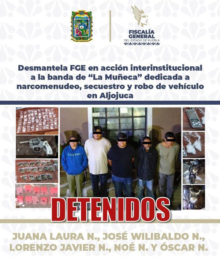 En un operativo coordinado entre autoridades estatales y federales permitió desarticular a un grupo delictivo presuntamente vinculado con narcomenudeo, secuestro y robo de vehículos en Aljojuca