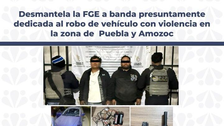 Amozoc, Pue.-La Fiscalía General del Estado desarticuló mediante un operativo a banda delictiva presuntamente dedicada al robo de vehículo con violencia en la zona limítrofe de los municipios de Puebla y Amozoc, operación en la que fueron asegurados Osmar Yoshudadt N. y Luis Daniel N. como probables integrantes.