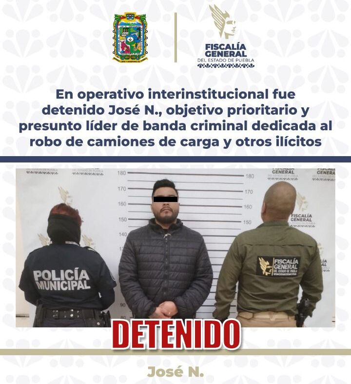 Durante las primeras horas de este martes, la Fiscalía General del Estado, confirmó la captura de José Gonzalo N., líder de la banda delincuencial de “Los González”, con presencia en el municipio de Amozoc y en otros municipios que conforman el llamado Triángulo Rojo.