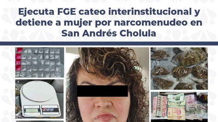 La Fiscalía General del Estado (FGE), en coordinación interinstitucional, ejecutó un cateo y detuvo a Leticia N., como probable responsable de delitos contra la salud, derivado de hechos