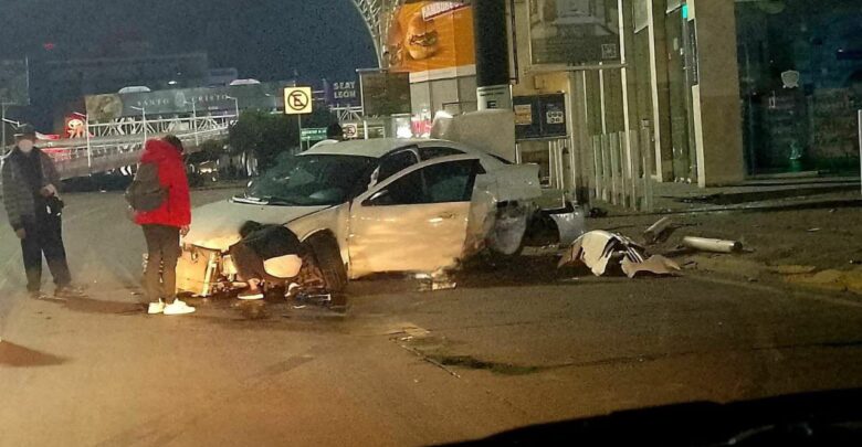 La madrugada de este sábado, un vehículo se impactó contra los bolardos de Plaza Mazarik en la Vía Atlixcáyotl, presuntamente por circular a exceso de velocidad.