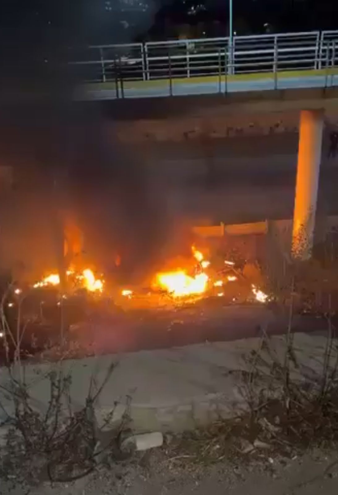 Un vehículo terminó en llamas sobre el Periférico Ecológico luego de que el conductor perdió el control, presuntamente por quedarse dormido cuando manejaba y se saliera del camino, el cual cayó varios metros hacia la ciclovía.