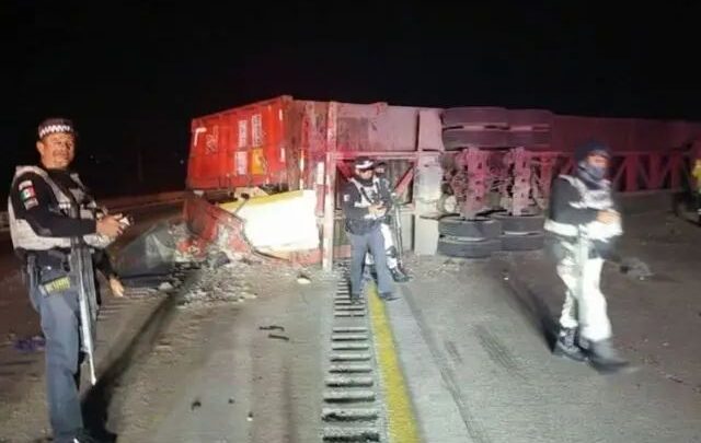 De acuerdo con los primeros reportes, el percance ocurrió alrededor de las 5:00 horas, cuando el conductor de la pesada unidad perdió el control del volante, posteriormente impactó contra el muro central y terminó volcando sobre la cinta asfáltica.