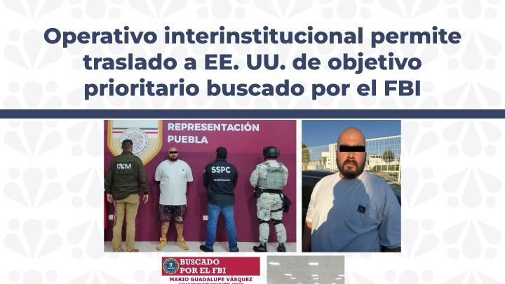 Al momento de su aseguramiento, el hombre tenía distintos estupefacientes, posteriormente, elementos de la Secretaría de Seguridad y Protección Ciudadana del gobierno federal (SSPC), el Instituto Nacional de Migración (INM) y la Fiscalía General del Estado de Puebla (FGE), concretaron su traslado a Estados Unidos, luego de que se corroboró que era un objetivo prioritario requerido por el FBI.