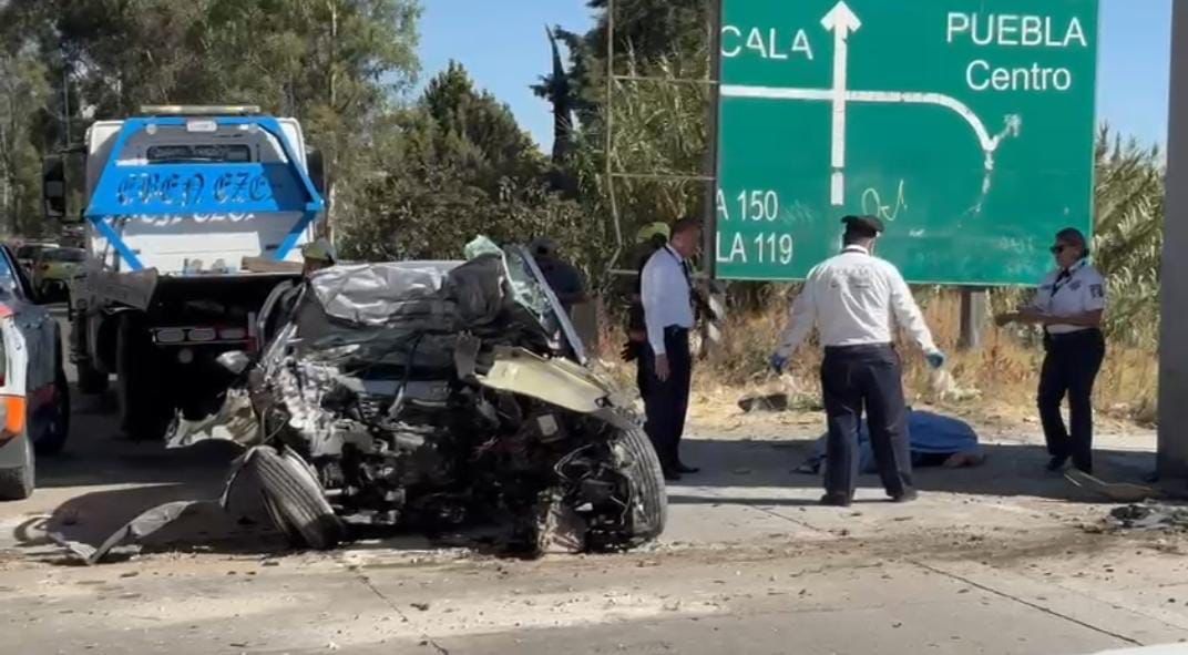 Puebla, pue.-La tarde de este martes, el conductor de un vehículo tipo sedán que presuntamente viajaba a exceso de velocidad sobre la autopista México-Puebla, murió atrapado en su vehículo, tras estrellarse contra una de las bases del segundo piso