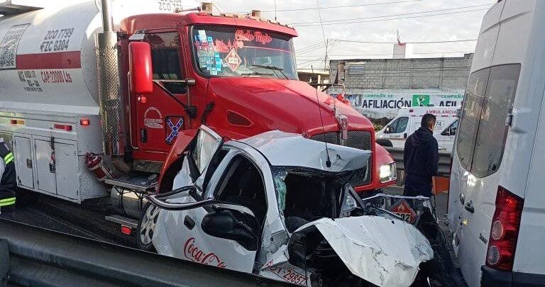 En el percance estuvieron involucrados tres vehículos: una pipa de agua, una camioneta y un automóvil de una empresa refresquera, lo que generó la movilización de los cuerpos de emergencia en la zona.