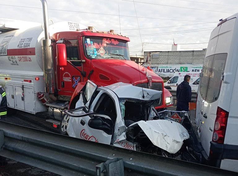 En el percance estuvieron involucrados tres vehículos: una pipa de agua, una camioneta y un automóvil de una empresa refresquera, lo que generó la movilización de los cuerpos de emergencia en la zona.