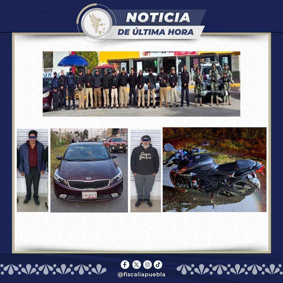 Tras instalar puntos de revisión estratégicos, fueron revisados 230 vehículos, siendo aseguradas una motocicleta Bajaj Pulsar 2024, con alteraciones en sus medios de identificación y un vehículo Kia modelo Forte 2018, con reporte de robo en el estado de Tlaxcala, así como los conductores de las unidades fueron detenidos por las autoridades.