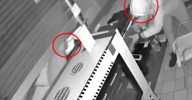 En la grabación, se muestra que son dos los responsables de saquear el negocio, mientras que el tercer sujeto se encarga de vigilar que no sean descubiertos y un cuatro espera en un vehículo para después escapar.