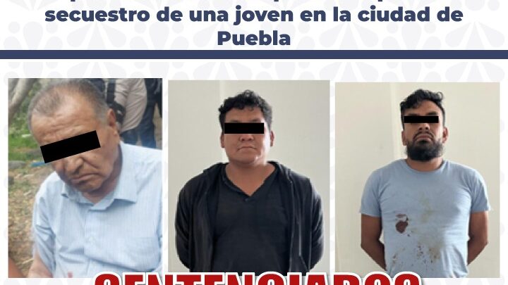 Puebla, Pue.-La Fiscalía General del Estado informó que logró una sentencia de 50 años de prisión al presentar pruebas técnicas suficientes que acreditaron la responsabilidad de Jesús N., Luis Enrique N. y Jesús N., de 71, 29 y 34 años de edad, respectivamente, en el secuestro de una joven en la ciudad de Puebla.