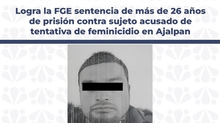 La Fiscalía General del Estado de Puebla, informó de la sentencia de 26 años, 8 meses de prisión contra Bernabé N., acusado de feminicidio en grado de tentativa ocurrido en Ajalpan.