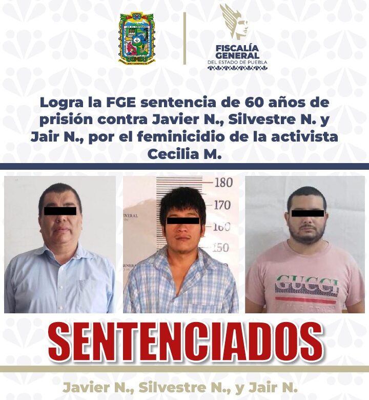 Puebla, Puebla.- El Tribunal de Enjuiciamiento, dictó este miércoles 31 de diciembre, la pena máxima contra Javier López Zavala y sus cómplices por el feminicidio de la abogada y activista Cecilia Monzón.