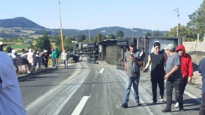Esperanza, Pue- La tarde de este miércoles, un tráiler cargado con más de 20 toneladas de pavos, para la temporada decembrina, terminó volcado en la autopista Puebla-Orizaba ya que el conductor de la pesada unidad perdió el control.