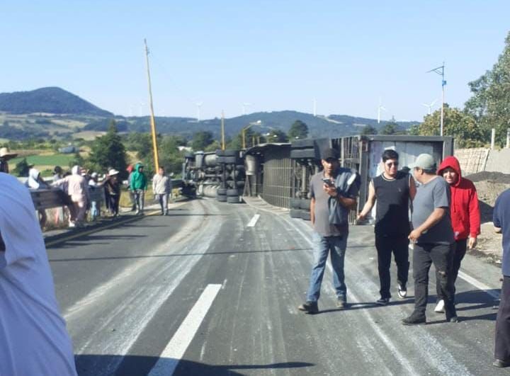 Esperanza, Pue- La tarde de este miércoles, un tráiler cargado con más de 20 toneladas de pavos, para la temporada decembrina, terminó volcado en la autopista Puebla-Orizaba ya que el conductor de la pesada unidad perdió el control.