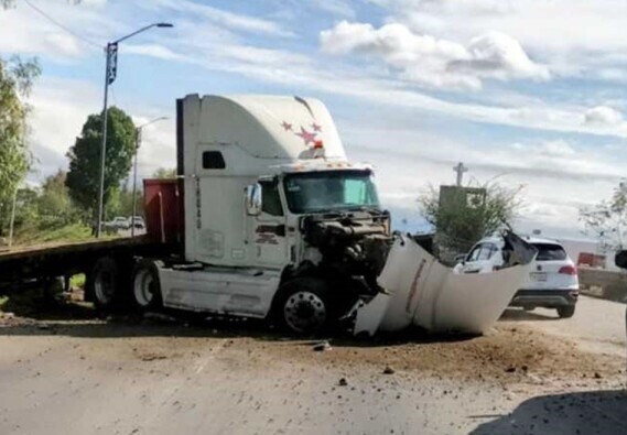 La unidad pesada terminó por salirse de la vialidad, donde el conductor se percató de lo sucedido.