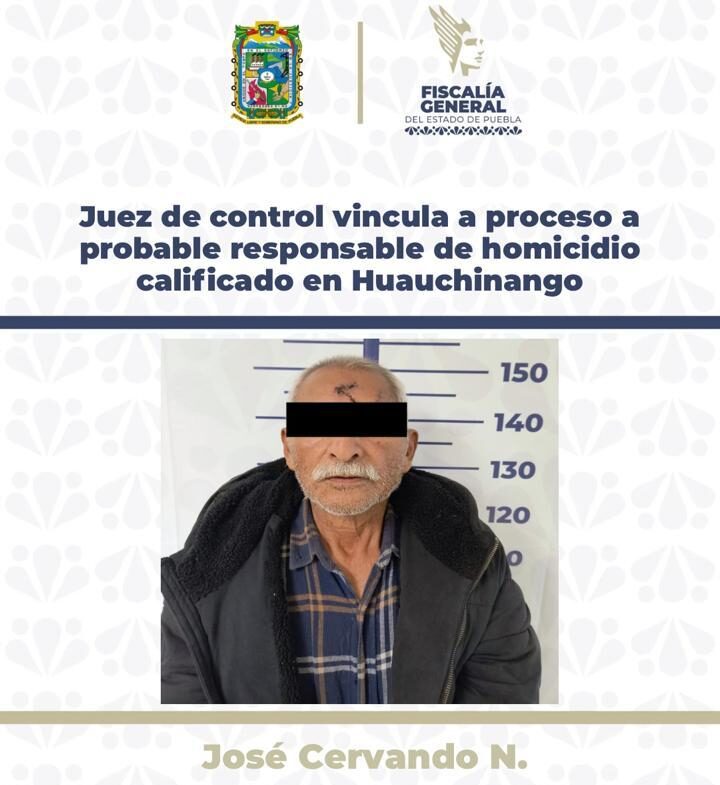 El Juez de Control determinó con base en los argumentos aportados por la Fiscalía General del Estado, la vinculación a proceso y otorgó prisión preventiva oficiosa contra José N., por su probable responsabilidad en el delito de homicidio calificado, ocurrido en Huauchinango, Puebla.