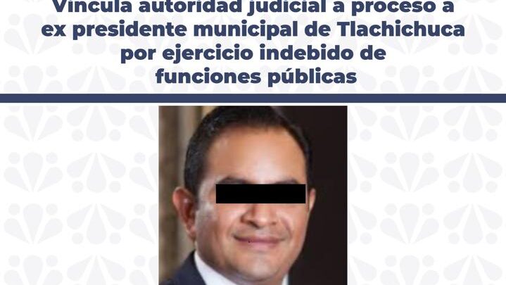 La Fiscalía General del Estado de Puebla informó sobre una nueva vinculación a proceso de Uruviel N., expresidente municipal de Tlachichuca, por su probable responsabilidad en el delito de ejercicio indebido de funciones públicas cuando fue edil en el periodo 2014 a 2018.