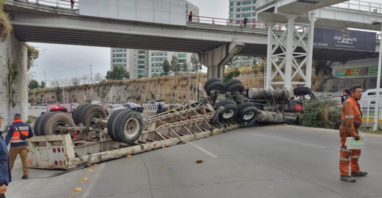 Afortunadamente no hubo personas lesionadas, pero las maniobras para retirar la pesada unidad tardaron varias horas, ya que el tráiler quedó totalmente atravesado sobre la vialidad.