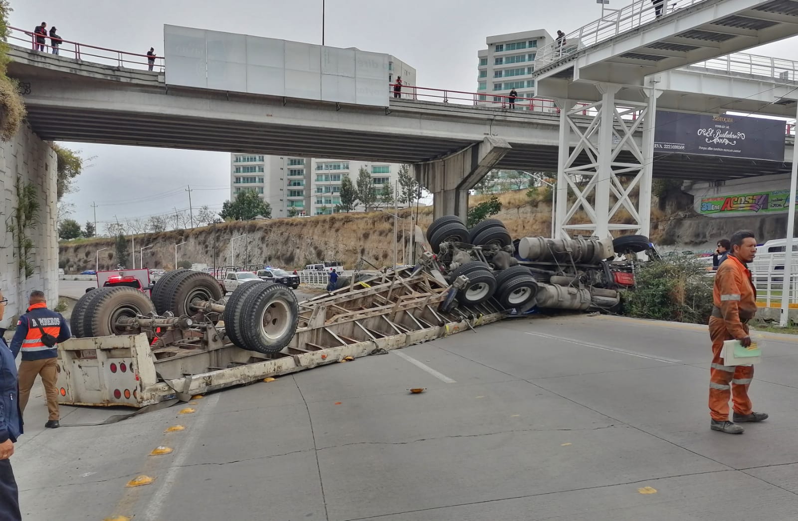 Afortunadamente no hubo personas lesionadas, pero las maniobras para retirar la pesada unidad tardaron varias horas, ya que el tráiler quedó totalmente atravesado sobre la vialidad.